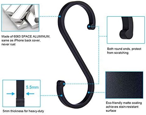 ACMETOP S Haken, 12 Stück S Haken schwarz, S-Haken für hängende Töpfe und Pfannen, Pflanzen, Kaffeetassen, Kleidung, Handtücher in Küche, Schlafzimmer, Bad, Büro und Garten Schwarz Matt