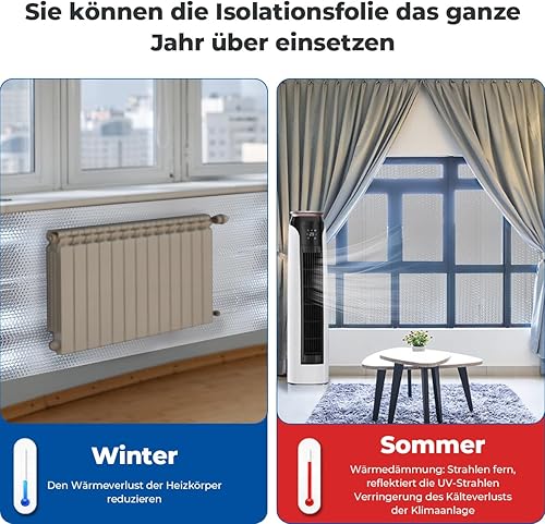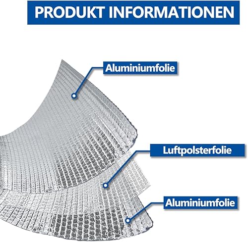 Storystore Aluminisierte Isolierfolie, 60 cm x 3 m, 3mm Dicke Dämmfolie, Alu-Luftpolsterfolie Heizkörper Reflexionsfolie für Fahrzeuge, Dächer, Fenster, Rohre usw