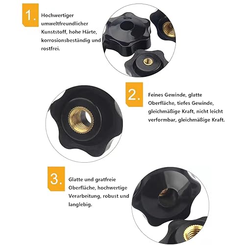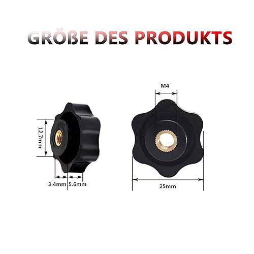 WUDQIJI Sterngriffmutter Stern Muttern 12 Stück M4 × 25 MM Innengewinde Klemmknopf Griffmuttern Rändelmutter Klemmmutter Durch Loch Star Kopf für Maschinen Industrie Elektronischen Geräten(M4)