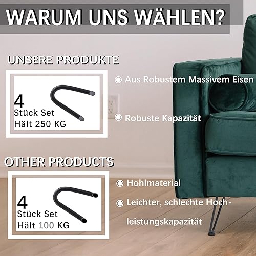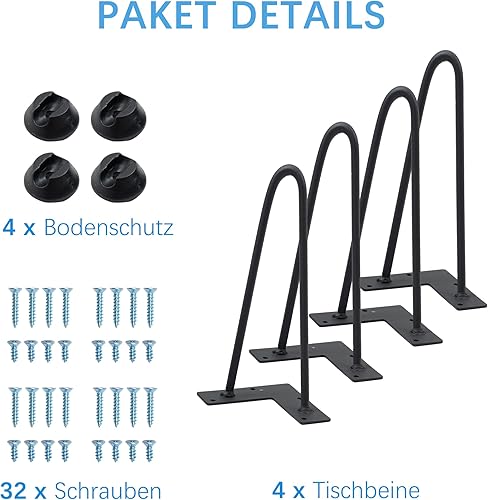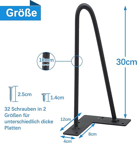 4X Hairpin Legs Haarnadel Tischbeine, DIY Doppelstab Möbelfüße für Schreibtisch Esstischbeine,Mit Bodenschoner und 32pcs Schrauben (30cm 2 Streben)