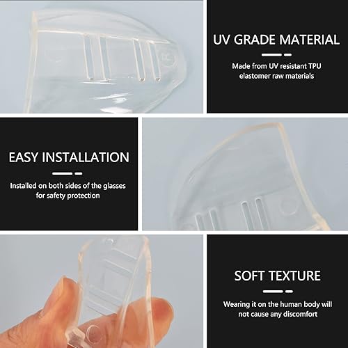 Colexy Brille Seitenschutz, 3 Paar Transparenter Schutzbrillen Seitenschutz, Flexibler Aufsteckschutz für Schutzbrillen, Sicherheit Auge Brillen Seitenschutz für Kleine bis Mittlere Brillen
