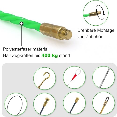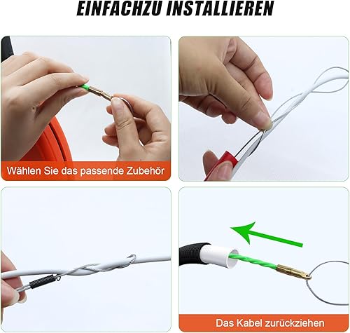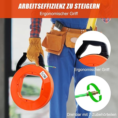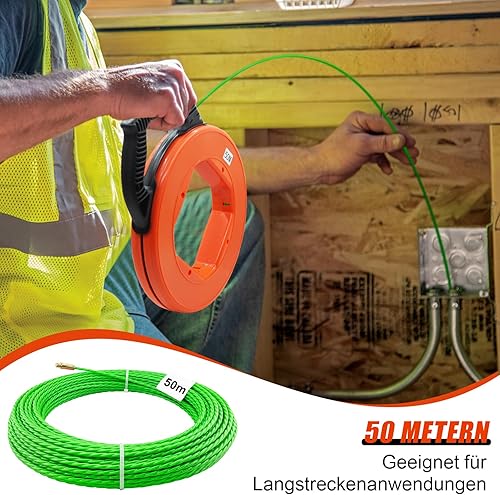 Kabeleinziehhilfe Einziehfeder 50m,Einziehspirale φ4.5mm,Kabeleinziehhilfe Glasfaser,Kabeleinzugshilfe mit Spiraldesign,Mit 7 FüHrungsfedern,für Elektroarbeiten, Telekommunikation, Datenverkabelung