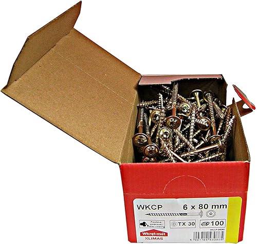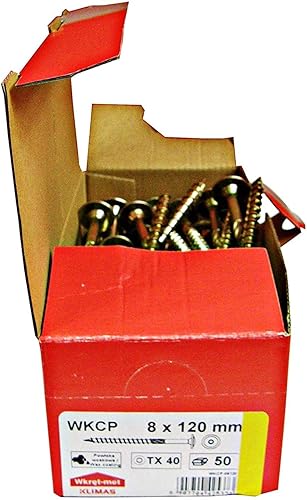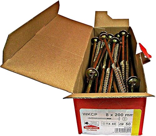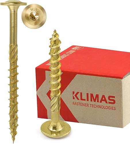 KLIMAS Holzschrauben Torx - Tellerkopfschrauben TX Gelb Schrauben - Flachkopfschrauben Holz - Tellerkopf - Schrauben Set Torx - Holzschrauben Set Dachkonstruktion Schrauben - 80x200 mm - 50 Stück
