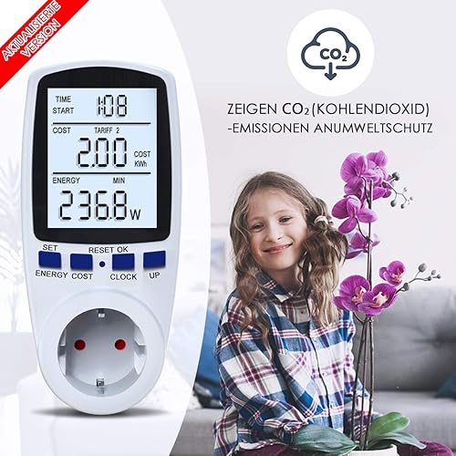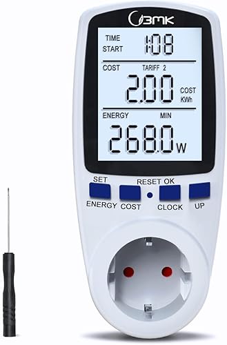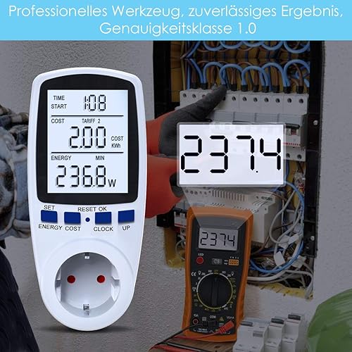 Stromkostenmessgerät, Stromzähler Leistungsmessgerät Energiekostenmessgerät Strommessgerät Steckdose, Leistungsmesser Messgerät mit Größer LCD Bildschirm, Überlastsicherung 3680W