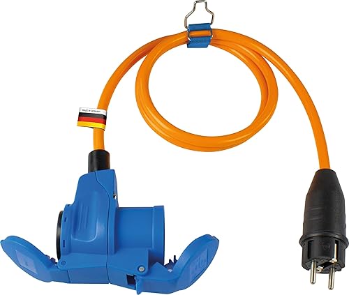 as - Schwabe Camping CEE-Adapterleitung 1,5 m - mit Schutzkontaktstecker - CEE-Winkelkupplung mit Schutzkontaktsteckdose + Klappdeckel - 230V, 16A - für Camping und Outdoor-Einsatz - IP44, 60483