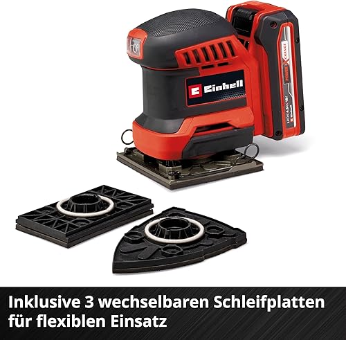 Einhell Akku-Faustschleifer TE-OS 18/113 3X Li-Solo Power X-Change (18 V, Schwingschleifer, 3x wechselbare Schleifplatten, 1,8 mm Schwingkreis, inkl. Zubehör ohne Akku)