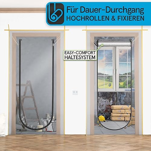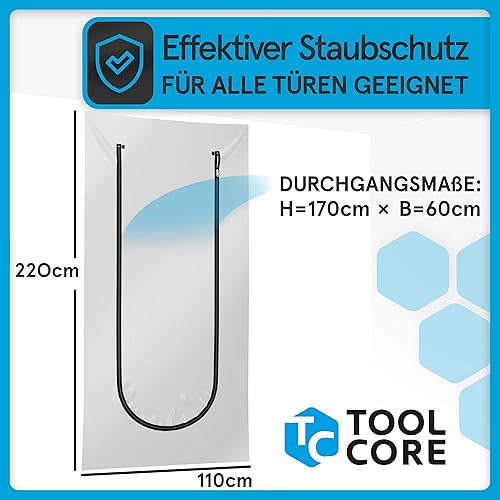 TOOLCORE® Staubschutztür mit Reißverschluss 1,1x2,2m [Extra Stark] Bautüre mit Reißverschluss inkl. Edelstahl Zipper + Easy Comfort Aufhänger - Staubschutzwand, Staubtür, Folientür