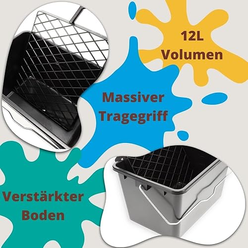 GarPet Farbeimer 3 Stück 12 L leer mit Ausgießer Skala Eckig Kunststoff Misch Maler Eimer Kübel