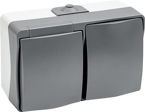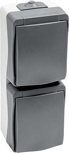 Meister Steckdose Cave 2-fach senkrecht - Aufputz-Montage - IP44 Spritzwasserschutz für Feuchtraum - Bis Leitungsquerschnitt 2,5 mm² - Grau / Feuchtraum-Steckdose / Aufputz-Steckdose / 7407030