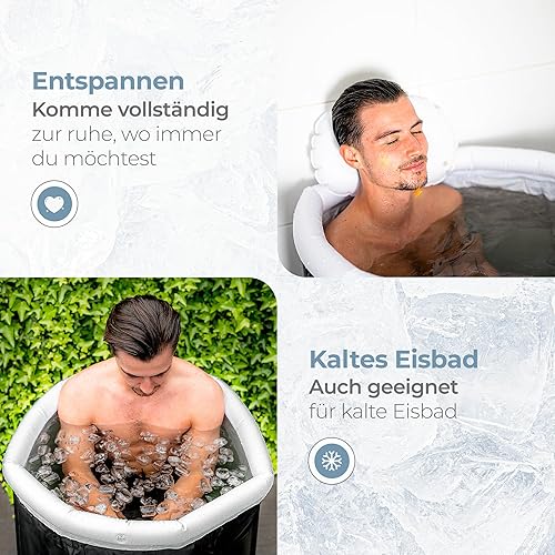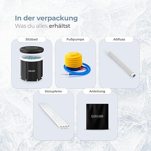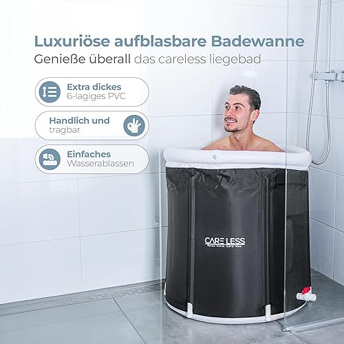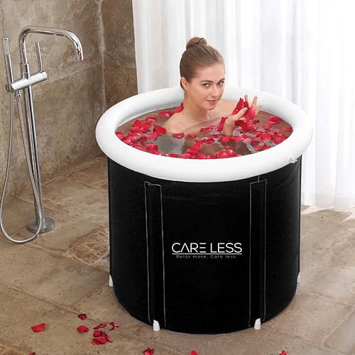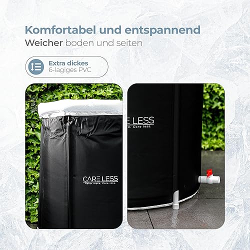 CARE LESS Aufblasbare Badewanne Komplettset - Faltbare Eisbad Tonne 75CM mit Abdeckung - Tragbares Ice Bath Tub für Erwachsene - Kryotherapie für Sportler & Anfänger - Hochwertiges PVC