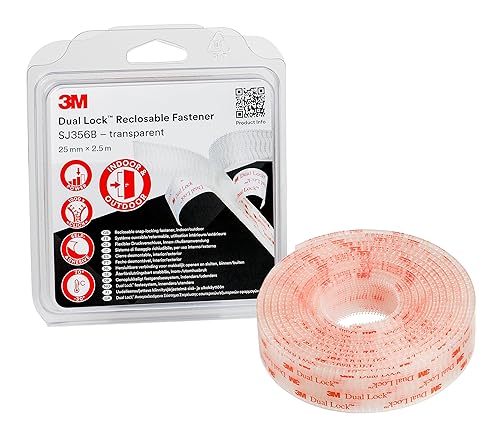 3M Dual Lock SJ3560, wiederlösbares Kletthaftband, starke Belastbarkeit, Für Innen- und Außeneinsatz - Metall, Glas, Kunststoffe (ABS, Acrylat…) - 25mm x 1,25m, Transluzent, Dicke: 5.7mm (1-er Pack)