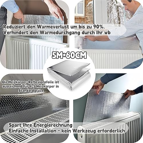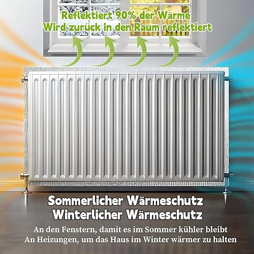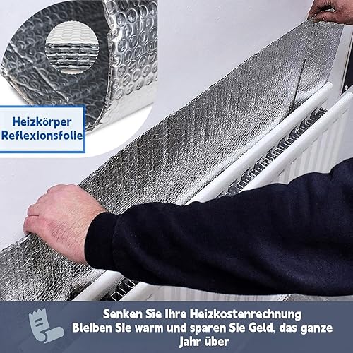 Magicbox Heizkörper Reflexionsfolie 5m x 0.6m x 3mm,Isolierfolie Heizung mit Klebepads,isolierfolie dämmfolie,Dachisolierung Thermo ,Doppelte Alu-Luftpolsterfolie,Thermofolie für Spart Energie