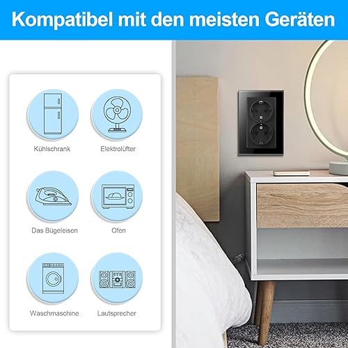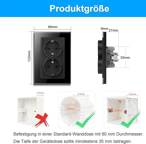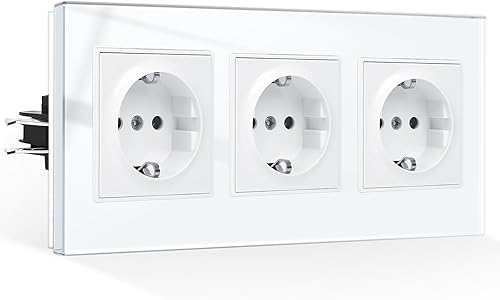 CNBINGO Schuko Steckdose Unterputz mit Krallen, Einzel Steckdose Gehärteter Glasscheibe, Weiß Schutzkontakt Wandsteckdose, 1-Fach, 16Amp, 250V
