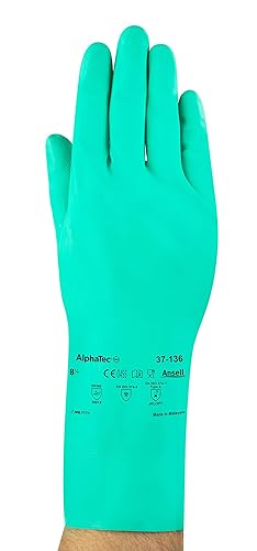 Ansell AlphaTec 37-136 Nitril-Handschuhe, Chemikalien Handschuhe, Chemikalien- und Flüssigkeitsschutz, Industrie PSA, Arbeitshandschuhe Wiederverwendbar, Grün, Größe S (12 Paar)