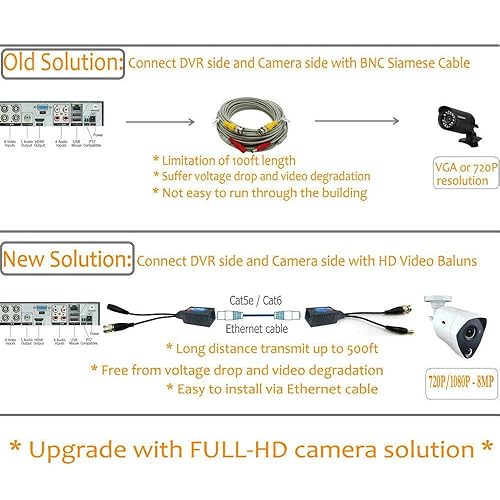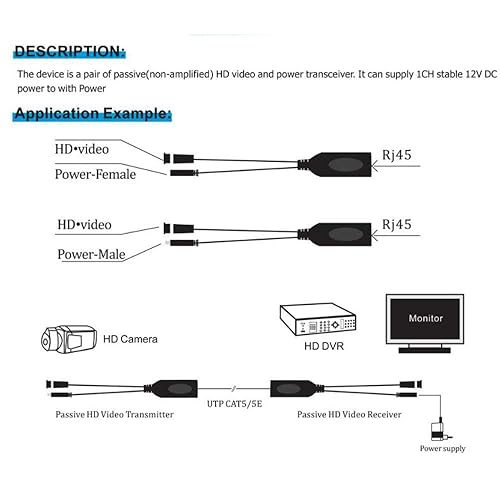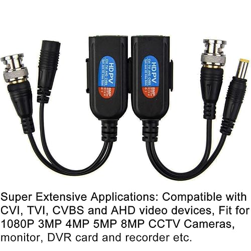 Greluma 4 Stk Balun HD Cat5 RJ45 zu BNC Video Baluns Transceiver Passiv mit Stromanschluss für 1080P 3MP 4MP 5MP 8MP HD-CVI/TVI/AHD/CVBS / 960H Kamera