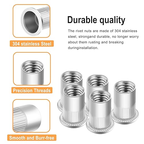 Nietmuttern M8 Gewindenieten Blindnietmuttern Nietmutter Edelstahl 70 Stück Runde Flachkopf Gewinde Rivet Nutsert Einnietmuttern Senkkopf Hülsenmutter Verwendet für Metallplatten Rohre usw