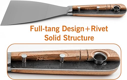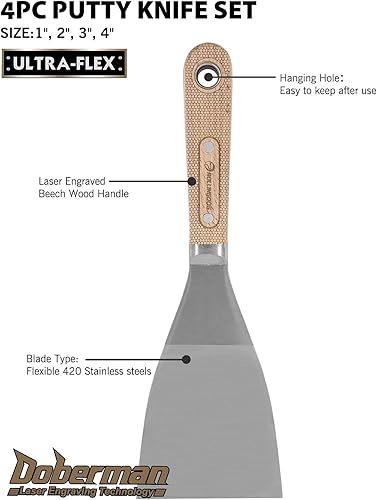 ROLLINGDOG 4 Stück Spachtel Set mit Edelstahlklinge und lasergraviertem Buchenholzgriff, zum Glätten und Spachteln von Wänden