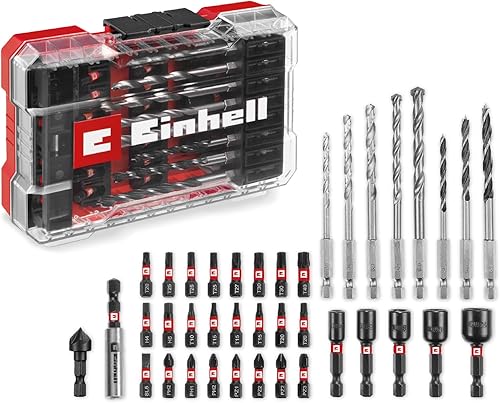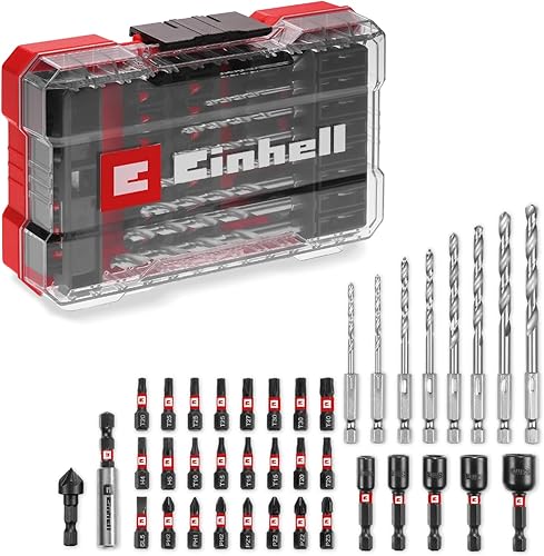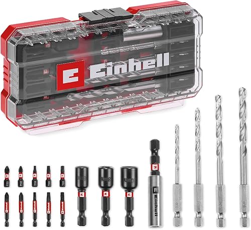 Original Einhell M-CASE 39-tlg. schlagfestes Zubehör-Set (25-mm-Bits, Metallbohrer, Universalbohrer, 60-mm-Bithalter, Steckschlüssel, Senker inkl. Aufbewahrungsbox)