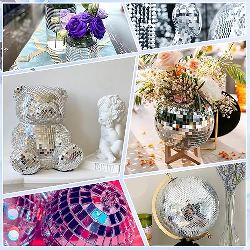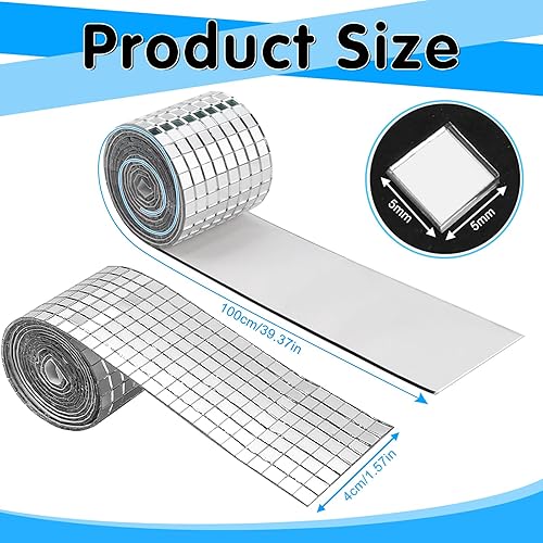 LPAMABA 4 Rollen 6400 Stück Mini Spiegel Mosaik Selbstklebend Mini Mosaik Spiegelfliesen Mini Spiegelmosaiksteine Selbstklebend Spiegel Mosaikfliesen Aufkleber 5 x 5 mm Glas für KTV Hause DIY