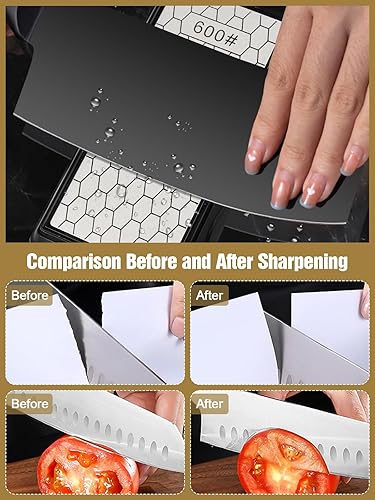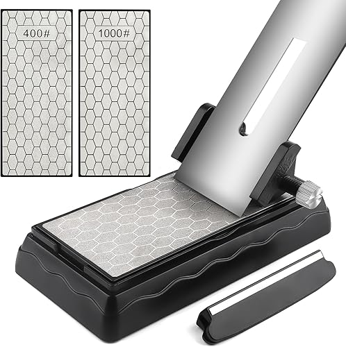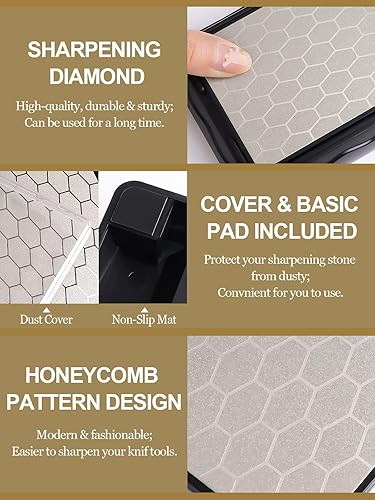 Doppelseitiger Diamant-Schleifstein, Kalolary Messerschärfer-Stein Waben-Oberflächenplatte mit rutschfester Basis für Scheren, Messer, Outdoor-Küchenschärfwerkzeuge (400/1000 Körnung, 150 x 63 mm)