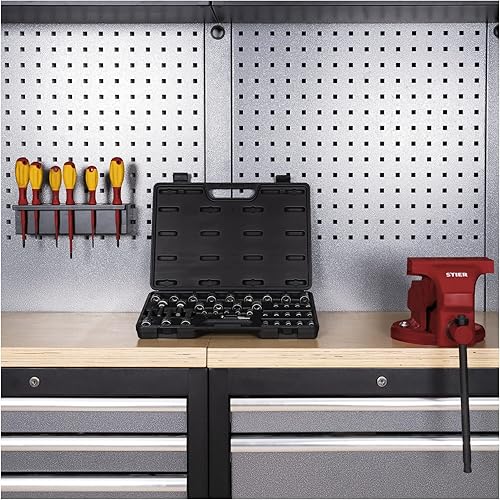 STIER Bit Steckschlüssel-Satz, 42-teilig, 1/2 Zoll und 1/4 Zoll, für Sechskant und Torx, Winkelschlüssel, für Nutzung auch in schwierigen Schraubfällen geeignet