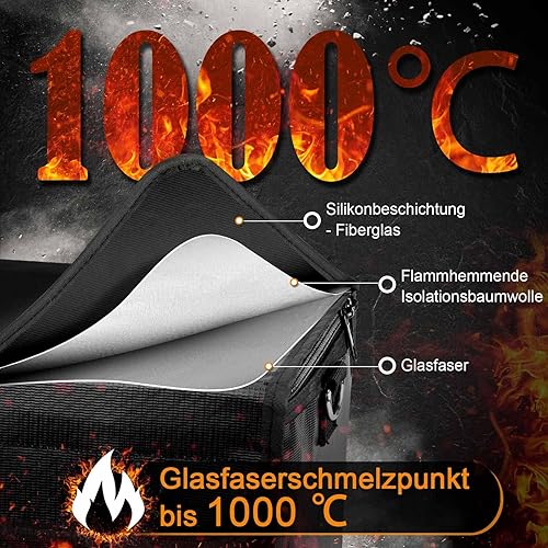 toptrek Ebike Akku Tasche, Feuerfest bis 1000°C ,Akku Tasche Wasserdicht Explosionssicher, Lipo Safe Bag für Lagerung Transport Aufladung, Ebike akku schutzhülle Großraum 49 x 15 x 15 cm (2 Stück)
