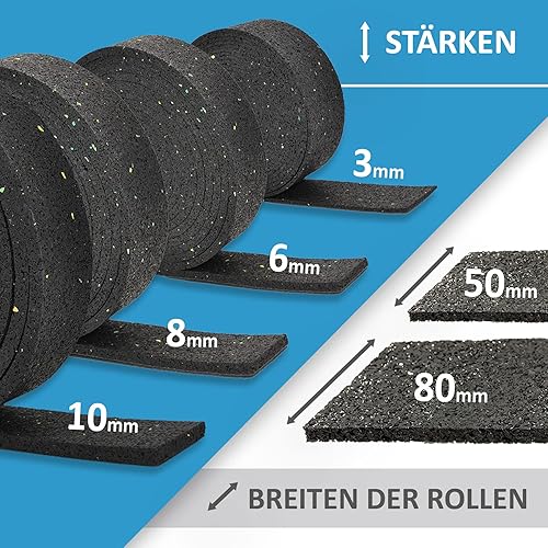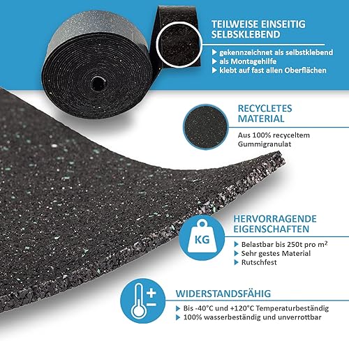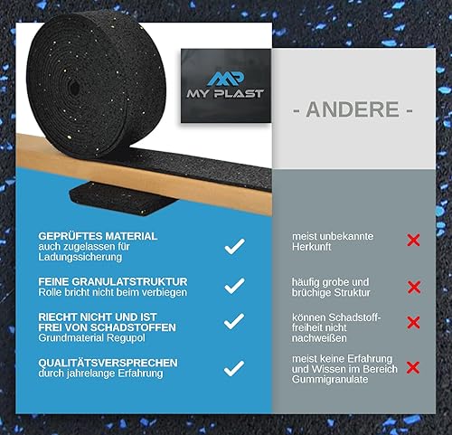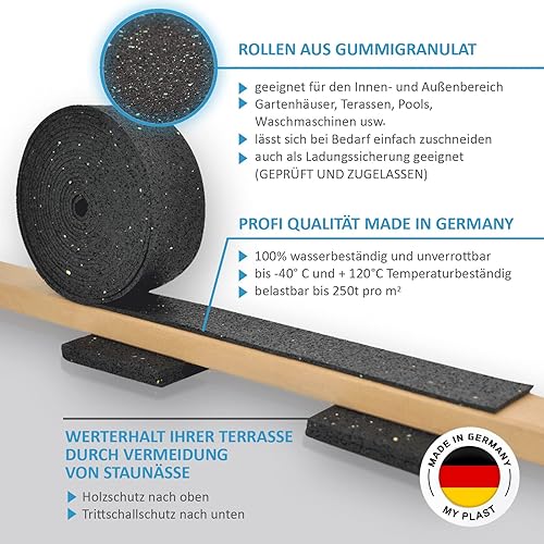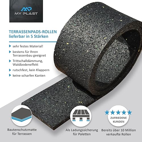 My Plast Terrassen-Pads Rolle – wasserbeständige Gummigranulat-Rolle für Terrassenbau, belastbare Bautenschutzmatte selbstklebend, 5.000 x 50 x 3 mm, 1 Stück…