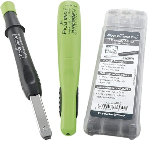 PICA-BIG Dry 1 x Marker + 12 Ersatzminen 6030 For All Bau-Minen Graphit