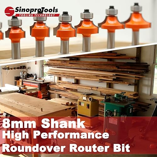 Sinoprotools 7 Stück Abrundfräser und Viertelstabfräser Set,8mm Schaft Rundfräser&Radiusfräser,Abrundfräser Fräser Oberfräse mit Kugellager,Kantenfräse/Frästisch Radius 2-3-4-5-6-8-10(Set 7-tgl.)