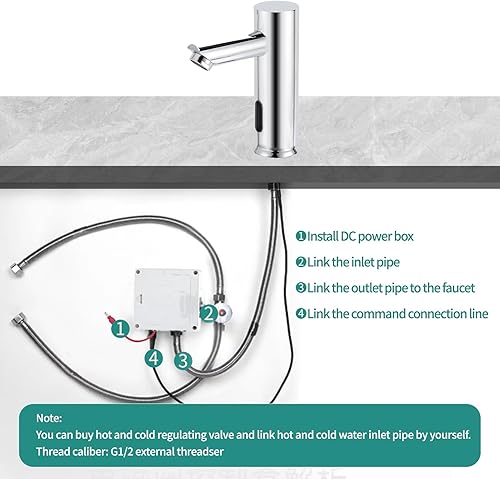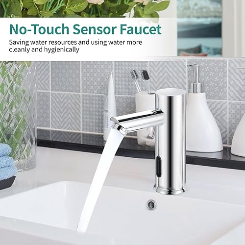 Gugxiom Touchless Bathroom Faucet, Automatischer Wasserhahn mit Sensor, Wasserhahn Messing 1 Hole, Tap for Bathrooms Kitchens Toilets