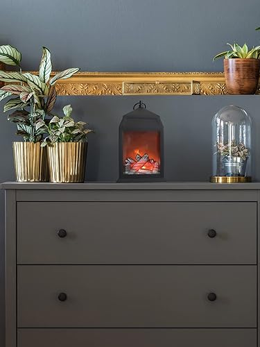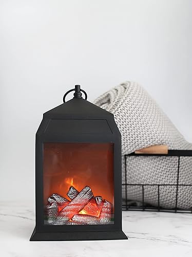 Winkee - Laterne Kaminfeuer | LED Tischkamin mit Flammenoptik | Indoor LED Kamin elektrisch | Kamin Feuer mit LED | Herbstdeko Lampe | Elektro Tisch Feuer | Geschenk für Weihnachten