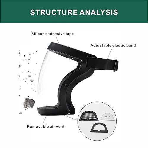 Fracavi Kunststoff-Vollgesichtsschutzschild Vollschutzausrüstung mit für Unisex und Erwachsene, wiederverwendbarer, transparenter Gesichtsschutz ohne Beschlag mit verstellbarem Band (2)