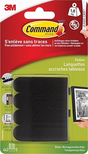 Command Klebestreifen, 4 Sets mit kleinen Strips (S), Schwarz – Bilder aufhängen ohne Bohren, Streifen halten bis zu 1,8 kg, rückstandsfreies Ablösen