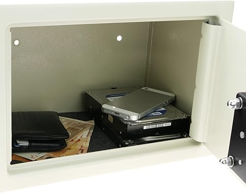 PrimeMatik - Wandtresor Stahl mit Schlüssel Mauertresor Möbeltresor Wandeinbautresor 35 x 25 x 25 cm beige