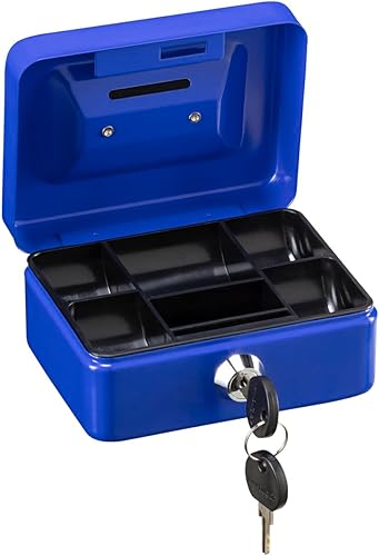Burg Wächter Geldkassette abschließbar mit Schlüssel, Einwurfschlitz und Hartgeldeinsatz, Klein, Stahlblech, Money 5012, Blau, 40100