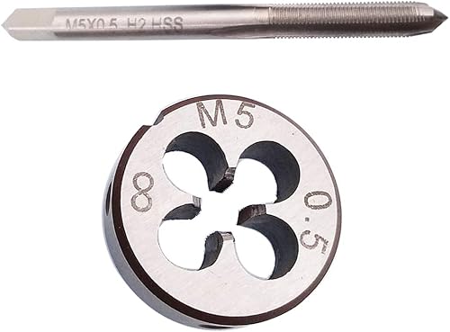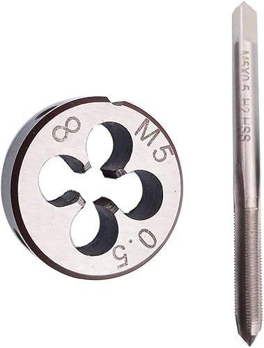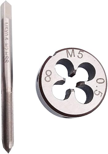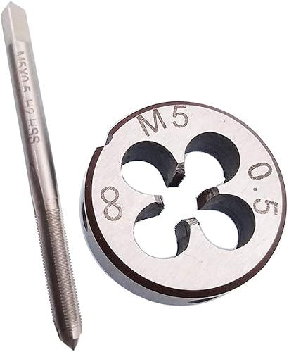 HUAZHICHUN 1 Stück M5 × 0,5 mm Gewindebohrer + 1 Stück M5 × 0,5 mm Gewindeschneider metrisch HSS Gewindebohrer und Schneideisen Set Rechtshänder
