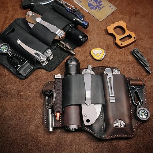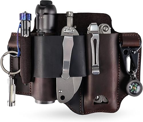 Sayram ST1/ST2 Multitool Lederscheide mit Schlüsselhalter, EDC Gürtel Organizer Messerscheide für Leatherman Werkzeuge, Taschenlampe, EDC Taschen Organizer für Herren