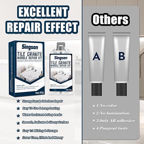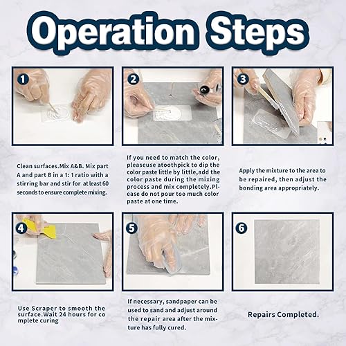 Fliesen Granit Marmor Reparatur-Set, Marmor Reparatur-Set (Farbabstimmung), Starkes und wasserdichtes Porzellan Reparatur-Set, Fliesen Reparatur-Set für Marmor, Fliesen, Harz, Acryl, Granit und mehr.