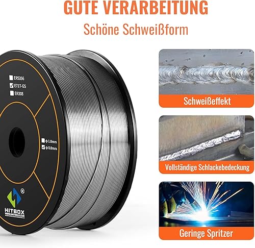 HITBOX MIG MAG Fülldraht Schweißdraht 1KG/2.2lb 0.8mm - E71T-GS für Schweißgerät fülldraht ohne gas Schweißgerät MIG Schweißdraht
