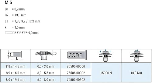 GOEBEL® - 250 x Blindnietmuttern Nietmuttern M6 Stahl verzinkt (Ø x L) 8,9 x 14,5 mm Blindmuttern Flachkopf Rundschaft gerändelt Schaftende offen Einziehmutter Einnietmuttern GO-NUT