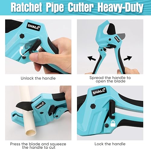 SHALL 1-5/8 (44 mm) Kunststoff-Rohrschneider, PVC-Schneider, Ratschen-Rohrschneider zum Schneiden von PEX-, PVC- und PPR-Kunststoffschläuchen mit 44 mm Außendurchmesser, hochwertige Kunststoffrohre
