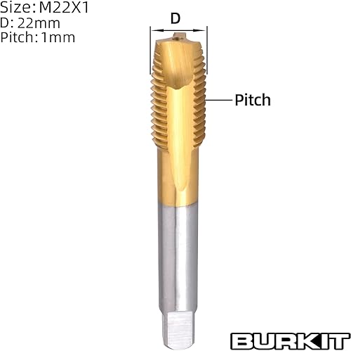 Burkit M22 x 1 Spiralgewindebohrer, HSS Titanbeschichtung Spiralspitze Gewindebohrer M22 x 1,0