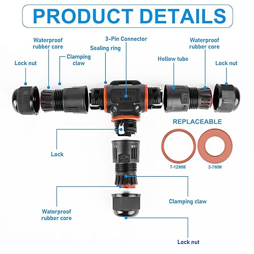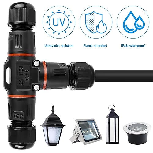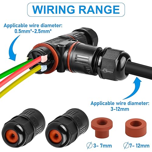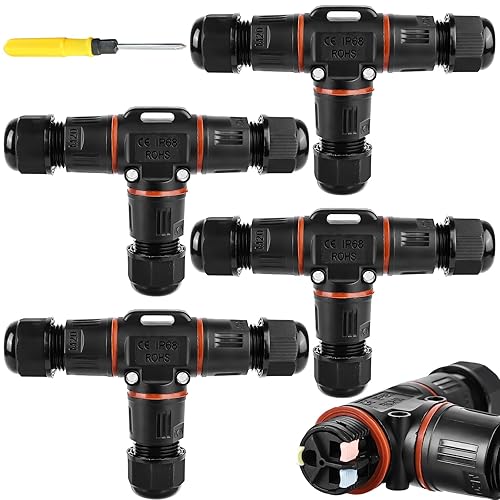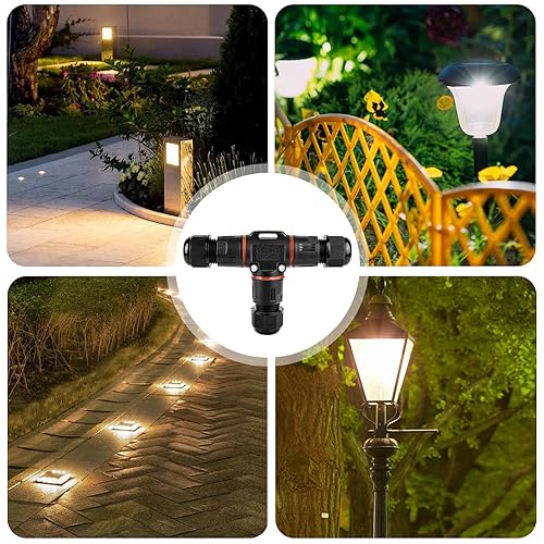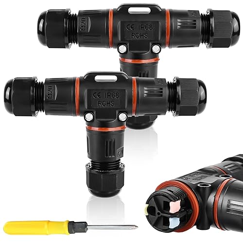 3-polig Kabelverbinder Wasserdicht IP68, T-Form Kabelverbinder Wasserdicht 3-polig Erdkabel Verbindungsmuffe für Ø3-12 mm Kabeldurchmesser, 2 Wege Wasserdichte Abzweigdose für Garten,Outdoor (2 Stück)