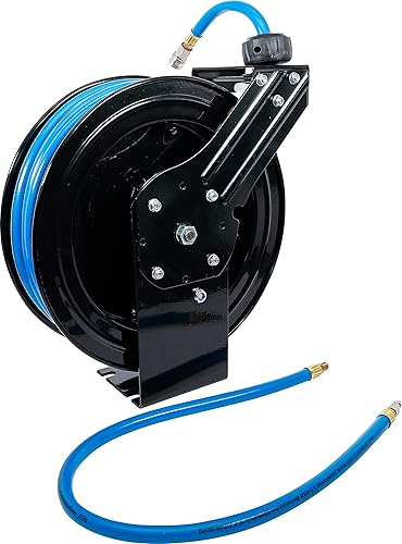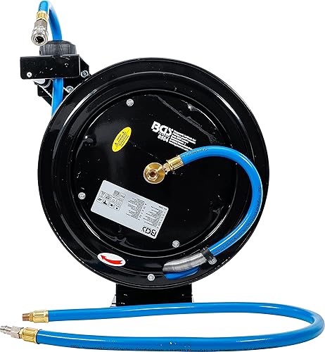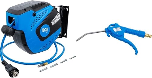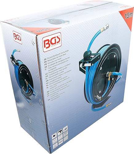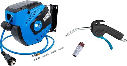 BGS 3297 | Druckluftschlauch mit Aufroller | automatisch | 10 m + 1,5 m Zuleitung | 180° schenkbar | inkl. Montagehalter | Schlauchaufroller | Druckluftschlauchtrommel