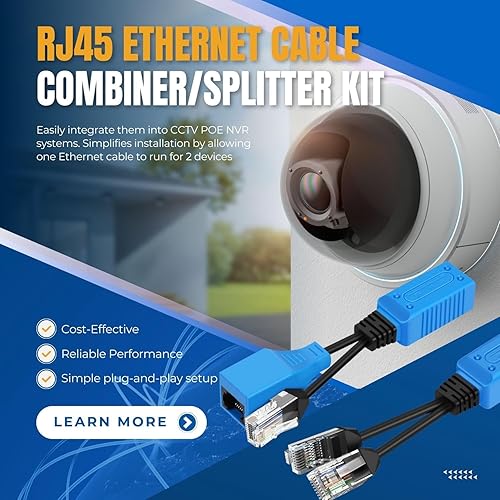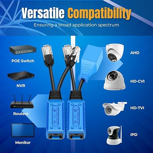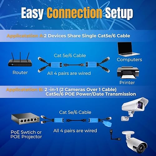 TNP RJ45 Splitter-Kit 1 Paar, RJ45 Ethernet Port Splitter, Stecker auf Buchse, UPOE Kabel, Y Splitter, PoE-Datenadapter, LAN-Ethernet-Verlängerung, Cat5 Cat5e Cat6 für Überwachungskamera