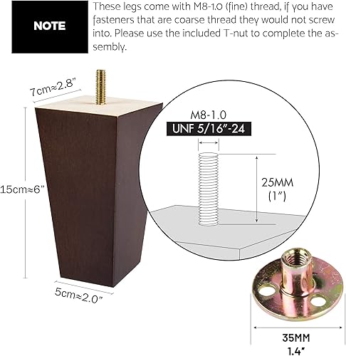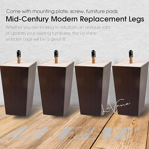 15cm Holz Tischbeine, La Vane 4 Stück Walnuss Massivholz Pyramide Ersatz Möbelfüße Möbelbeine mit vorgebohrten M8 5/16' Bolzen & Montageplatten & Schrauben für Sofa Bett Schrank Couch Ottomane