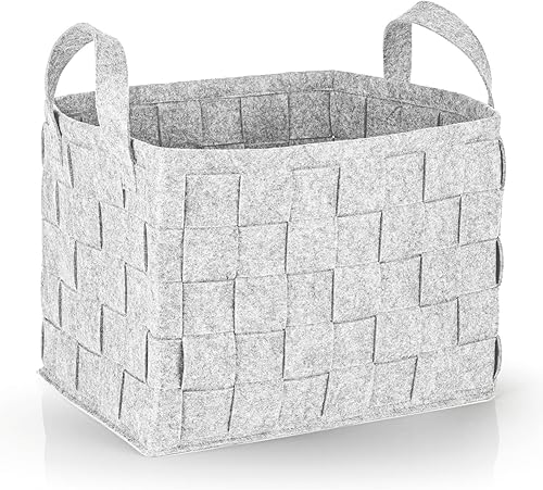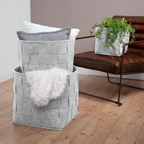 N8WERK Filz-Aufbewahrungskorb mit Griff 35x25x25cm | Ideal zur Aufbewahrung von Kaminholz & Zeitschriften | Strapazierfähig & vielseitig | Faltbarer Aufbewahrungskorb zur Lagerung [Dunkelgrau]