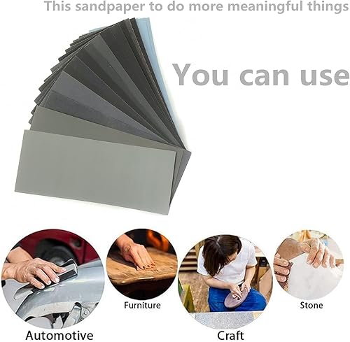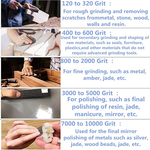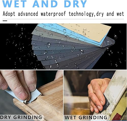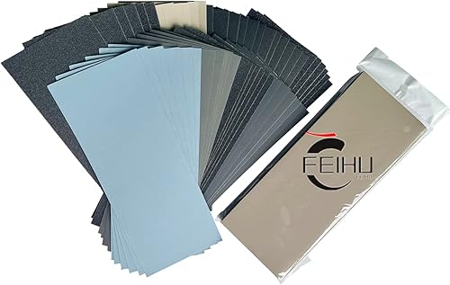 FEIHU Schleifpapier Set, Körnung von 120 bis 10000, Wasserfest Nass & Trocken für automatisiertes Schleifen, epoxidharz, Holz, Stein, Lack, Metall,Autos9 x 3,6 Zoll(51 Stück)
