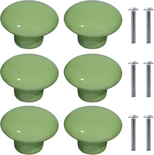 NAKUPENDA 6 Stück Möbelknöpfe Runden Keramik Schrank Schubknöpfe Knauf Keramik Runden Griffe für Kinderzimmer Küchen Schränke Bücherregal (Hellgrün)