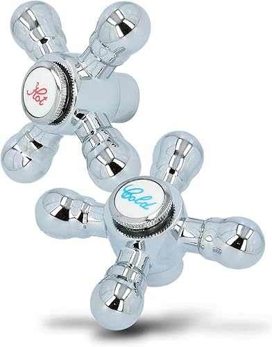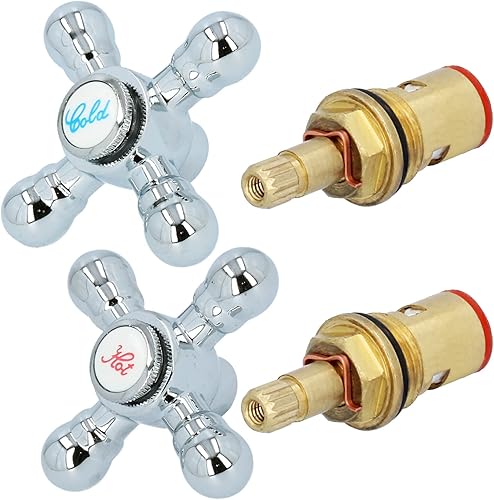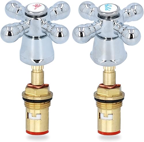2 Paar Wasserhahngriff Set Keramik Oberteil Messing Ventiloberteil 1/2 Zoll Sanitär-Oberteil Mit Nostalgie Retro Griff Chrom Hot & Cold Rot Blau Wasserhahn Kartusche | Ersatzteile Armaturen Bad Küche